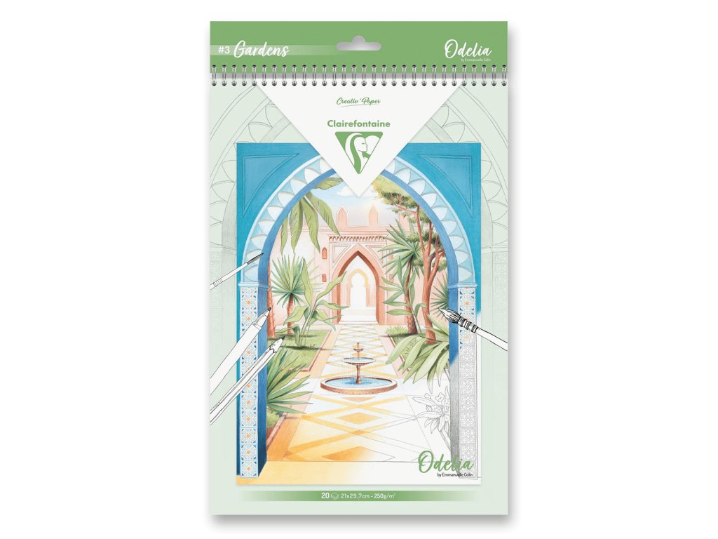 Omalovánky Clairefontaine Odelia Gardens určené pro objevení a vyzkoušení různých technik a stylů barvení. Předřezané listy pro případné snadnější vytržení z bloku.