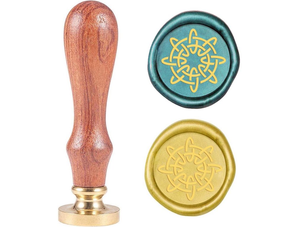Kovové pečetidlo s dřevěnou ručkou pro práci s pečetními vosky.