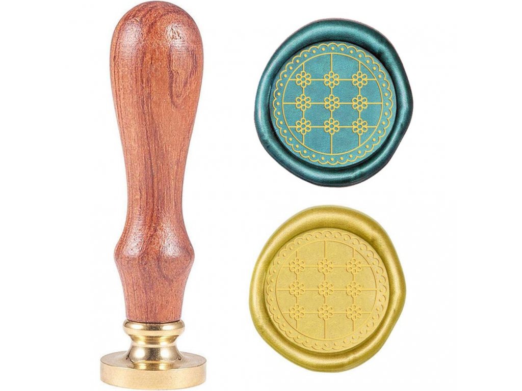 Kovové pečetidlo s dřevěnou ručkou pro práci s pečetními vosky.