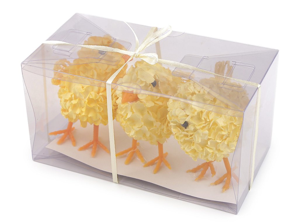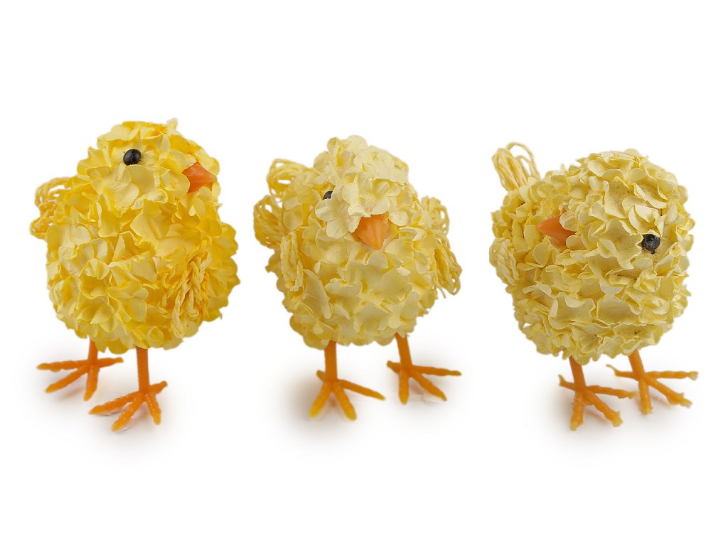 Dekorační kuřátko oživí jarní vazby, aranžmá, květináče i věnce. Základ je polystyrenový, tělo kuřátka je pokryté drobnými papírovými květy.