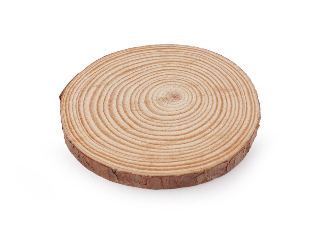 Přírodní dřevěné kolečko se hodí k dalšímu dotvoření. Je rovné, po obvodu má kůru. Není barvené ani lakované, každý kus se může lišit jak barvou, tak kresbou dřeva, velikostí i tloušťkou.