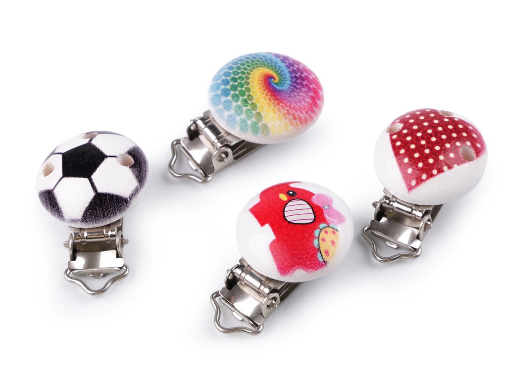 Kovový klip s dřevěnou ozdobou využijete například na jmenovky, kdy průvlekem provlečete stuhu nebo šňůrku. Zoubky uvnitř zabraňují klouzání.