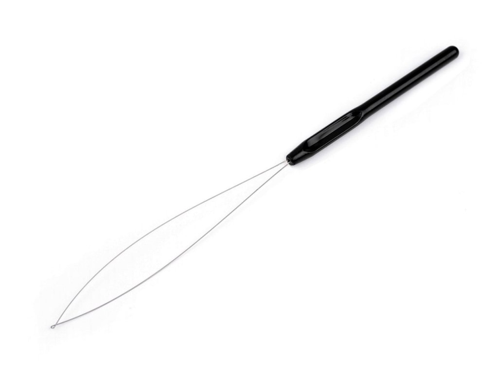 Navlékač nití / dlouhá navlékací jehla je kvůli silnějšímu drátku vhodná spíše na velké jehly, pleteniny apod. Díky své délce se dostane i na těžko dostupná místa.