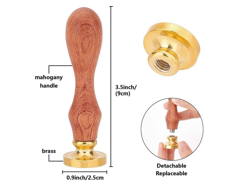 Kovové pečetidlo s dřevěnou ručkou pro práci s pečetními vosky.