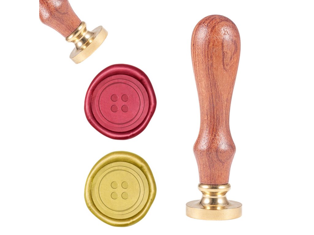 Kovové pečetidlo s dřevěnou ručkou pro práci s pečetními vosky.