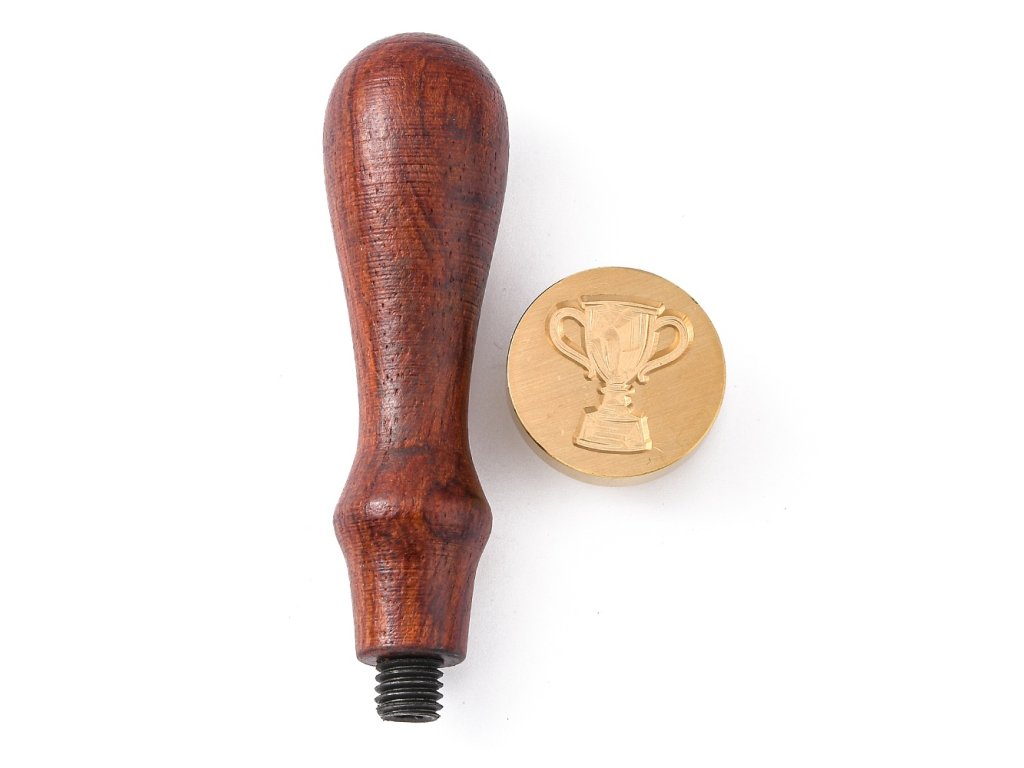 Kovové pečetidlo s dřevěnou ručkou pro práci s pečetními vosky.