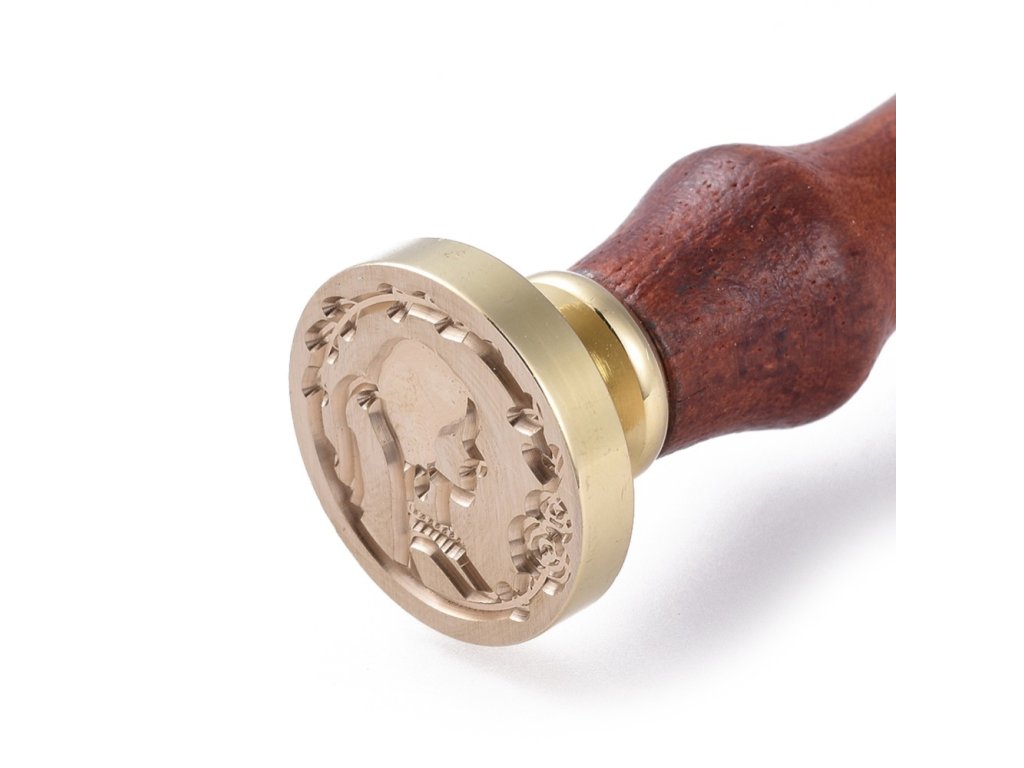 Kovové pečetidlo s dřevěnou ručkou pro práci s pečetními vosky.
