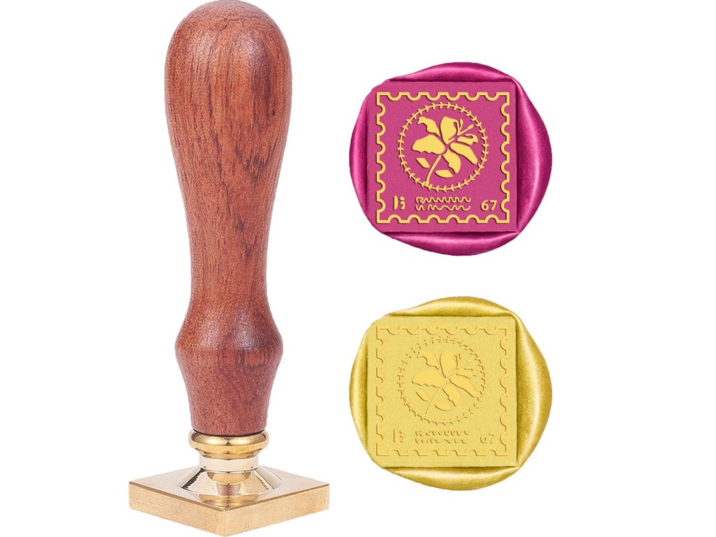 Kovové pečetidlo s dřevěnou ručkou pro práci s pečetními vosky.