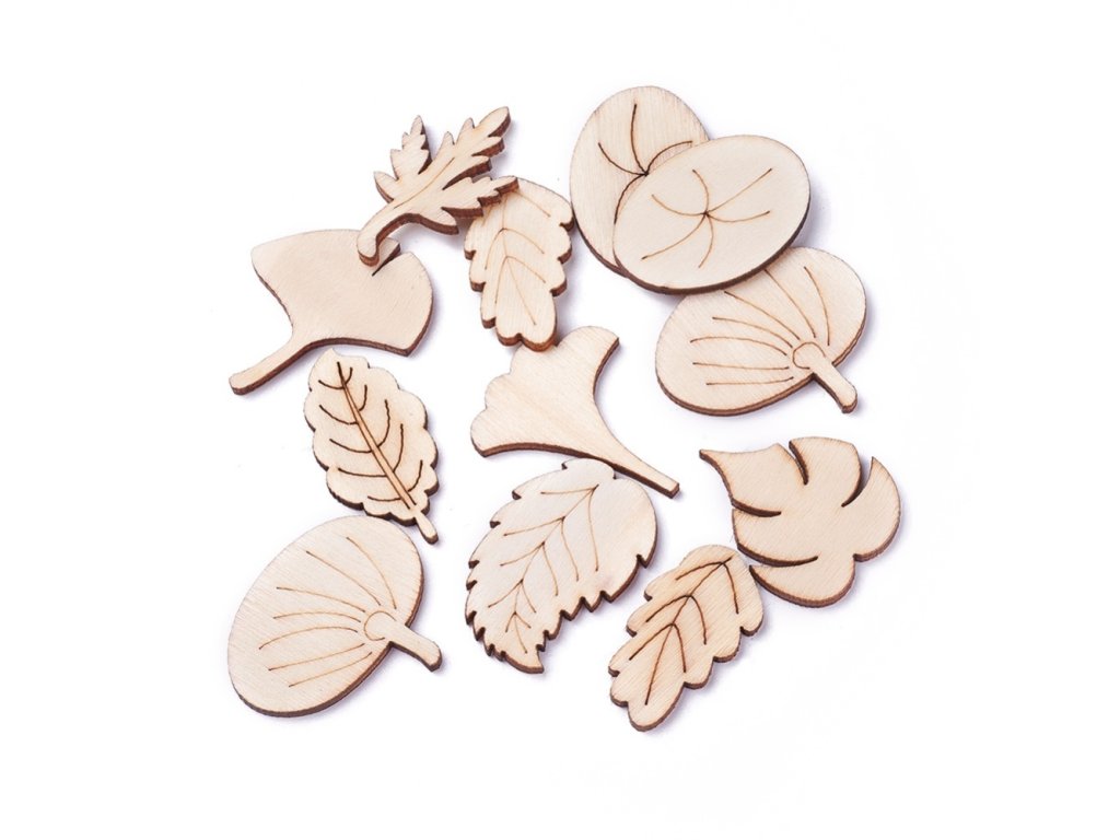 Dřevěné ozdoby, 100 ks - listy (A)