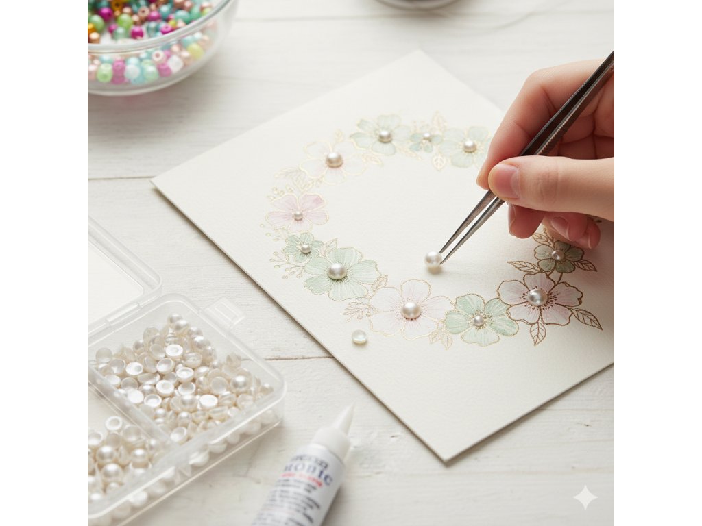 Náš tip: Zkuste perly použít na zvýraznění detailů, jako jsou středy květin nebo elegantní lemování na vašich ručně vyrobených albech a dekoračních předmětech.