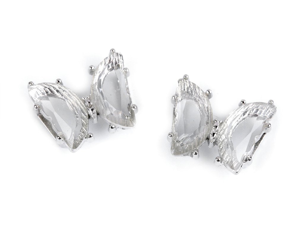 Ozdoba motýla je velice poutavá díky transparentním křídlům. I když jsou plastová, mají stejně zajímavé odlesky jako broušené kamínky. Ozdoba má mnohostranné využití, na spodní straně má 2 podlouhlé průvleky. Můžete ji použít k dekoračním účelům. Zajímavě vynikne provlečená na stužce, kterou se ováže např. svícen, papírové přání nebo dárková krabička. Je vhodná i jako ozdoba na oděvy, tašky a kabelky.