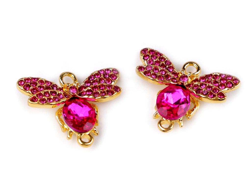 Elegantní přívěsek malého motýlka nebo hmyzu je ozdobený třpytivými broušenými kamínky. Je jednostranný, průvlek má nahoře i dole, můžete jej využít i jako spojovací díl.