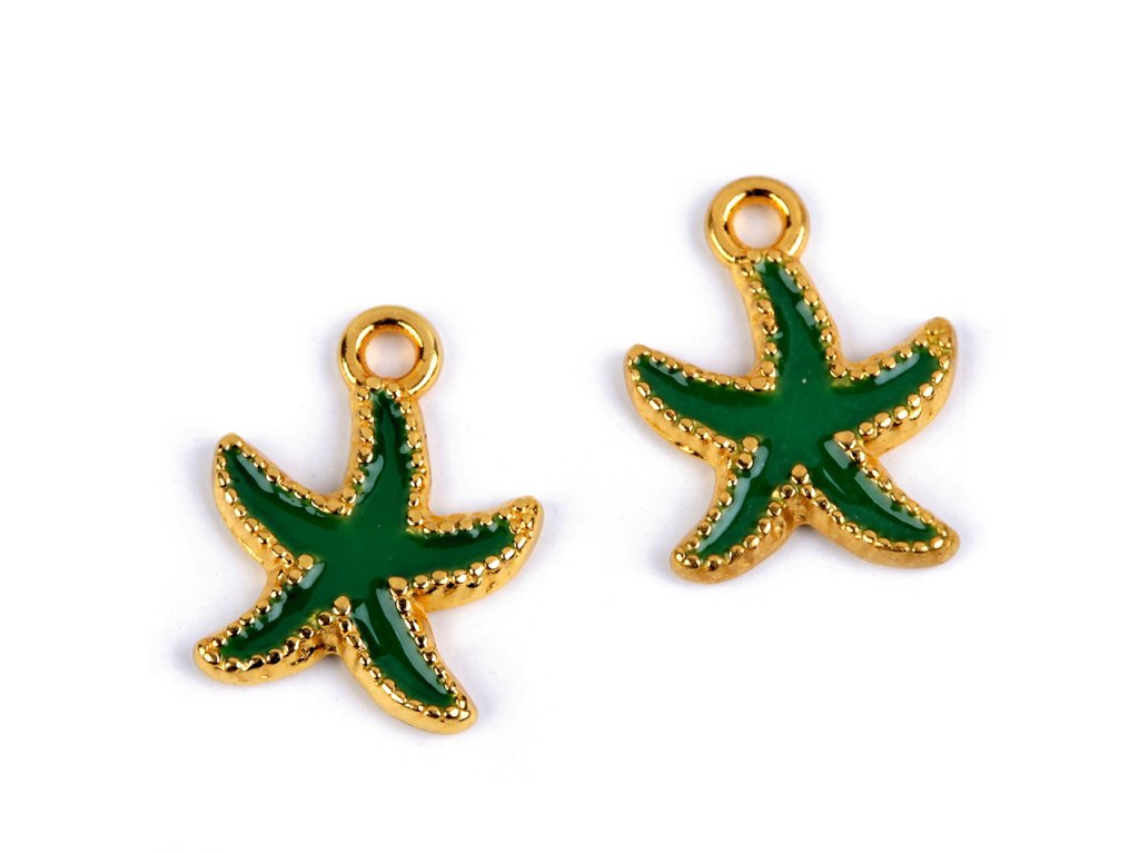 Přívěsek kovové mořské hvězdy se smaltem je velice roztomilý. Má mnohostranné využití, je jednostranný, z nemagnetického kovu.