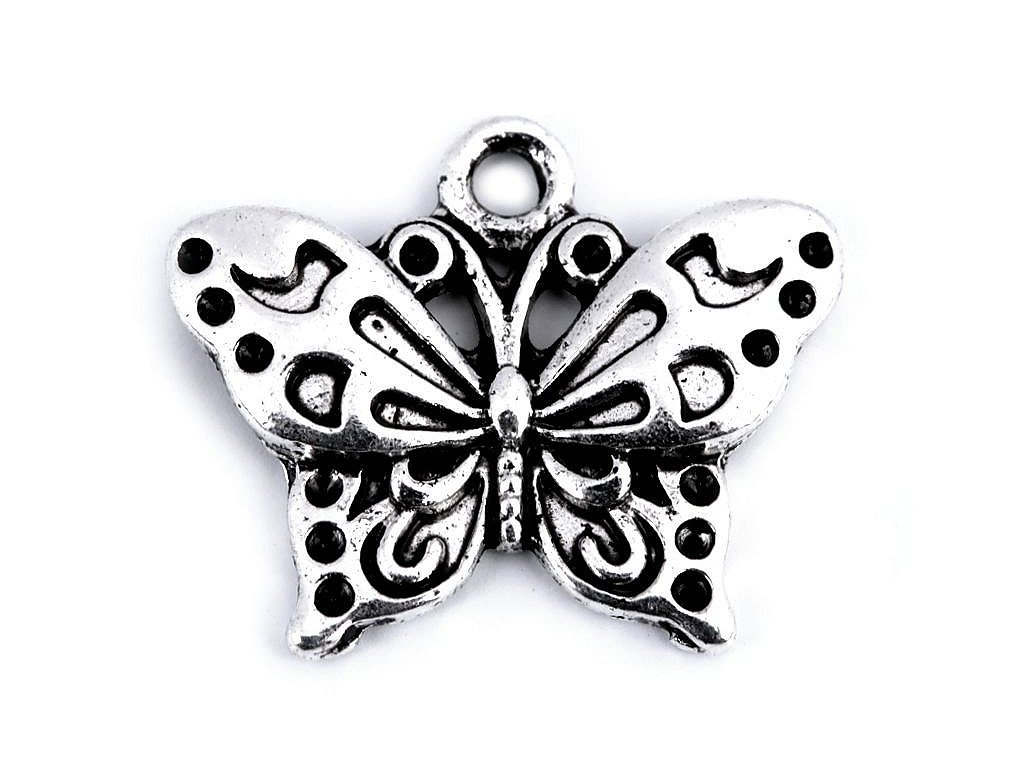 Přívěsek motýlka využijete mnoha způsoby. Je z nemagnetického kovu, jednostranný, jemně vypouklý.