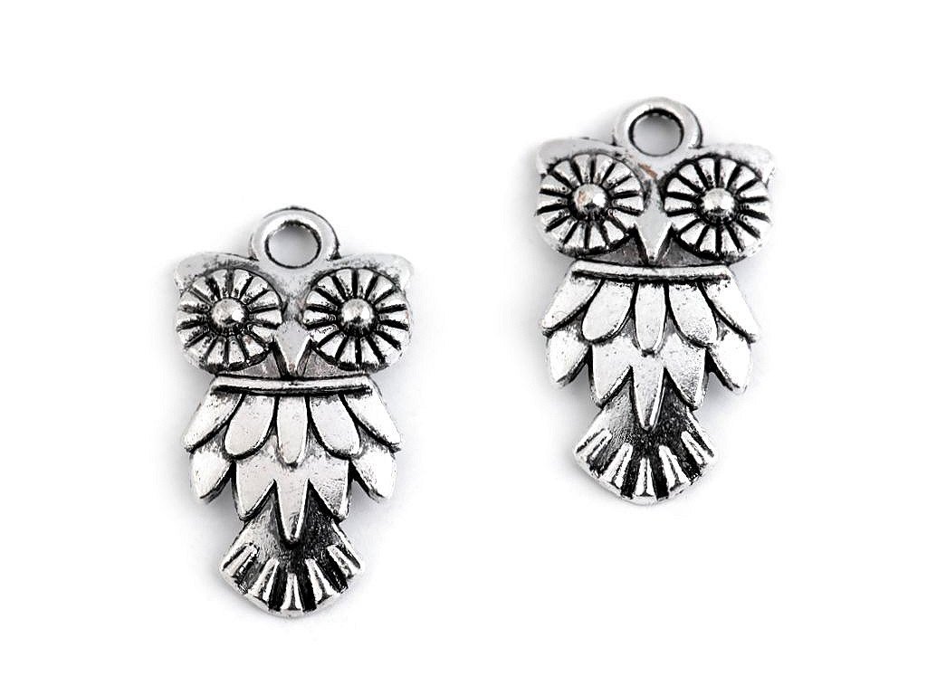 Přívěsek ve tvaru sovy využijete mnoha způsoby. Je jednostranný, z nemagnetického kovu.
