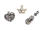 Kovový přívěsek / taháček na zip srdce, housle, korunka s broušenými kamínky