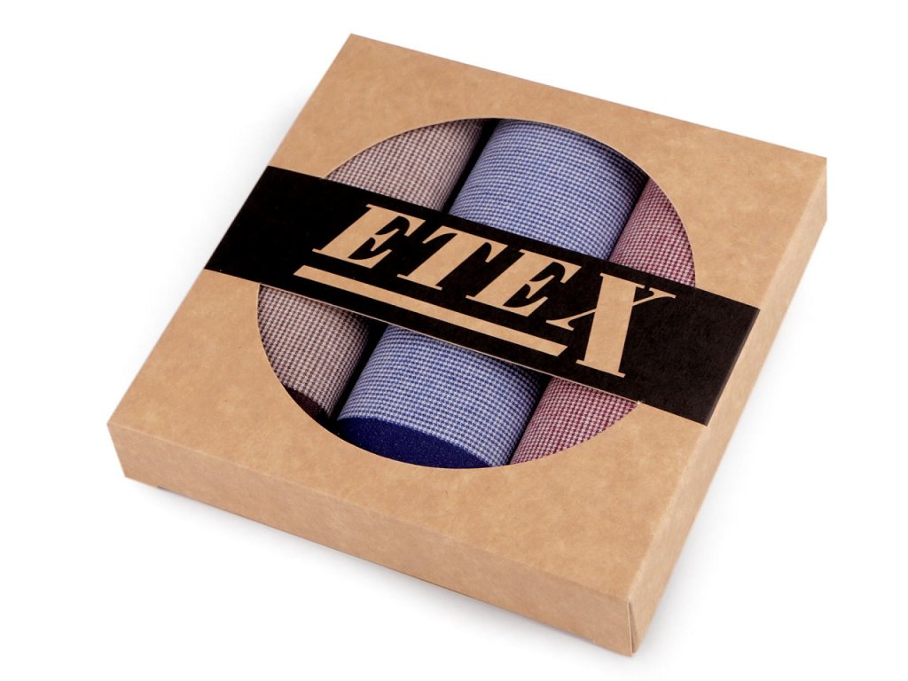 V krabičce najdete 3 čtvercové kapesníky.