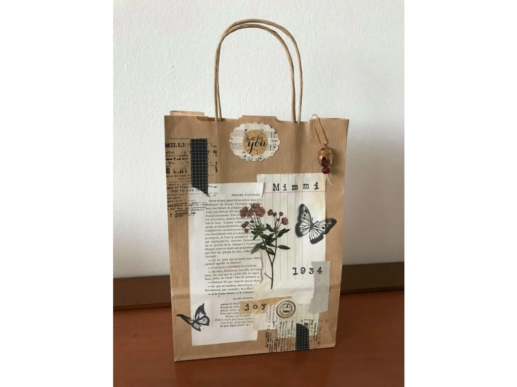 Papírová taška v přírodním stylu je vhodná k dozdobení. Můžete ji pomalovat či polepit různými obrázky nebo krajkou. Taška je vhodná k jakékoli příležitosti, ušetří vám čas při balení dárků.