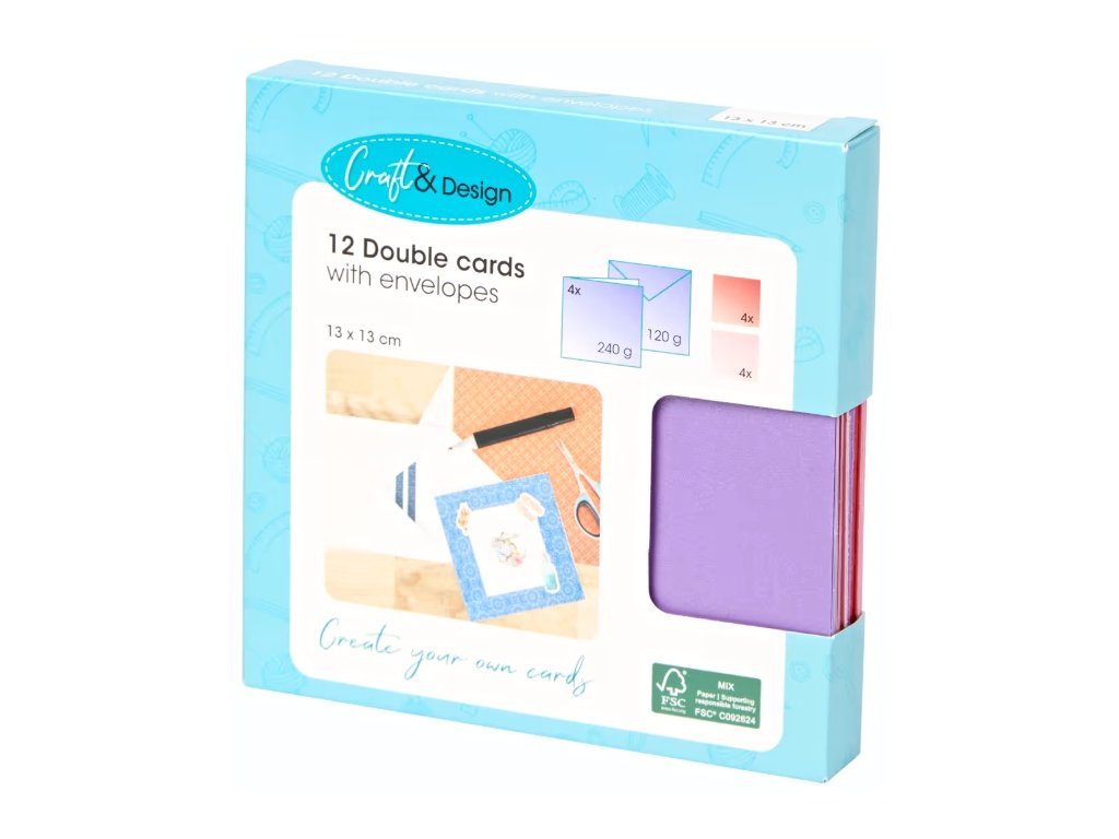 Popusťte uzdu své kreativitě s touto sadou 12 dvojitých přáníček včetně obálek. Ideální k tvoření vlastních přání k narozeninám, svátkům nebo jen tak pro radost. Díky pevnému papíru budou vaše výtvory vždy působit profesionálně.