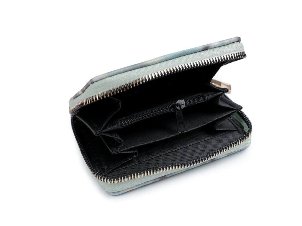 Peněženka je uzavíratelná na zip, uvnitř se nachází tři velké přihrádky na bankovky a jedna uzavíratelná na zip, do které schováte mince a různé drobnosti. Po stranách peněženky se nachází dvě podlouhlé kapsy a šest přihrádek na doklady a karty.