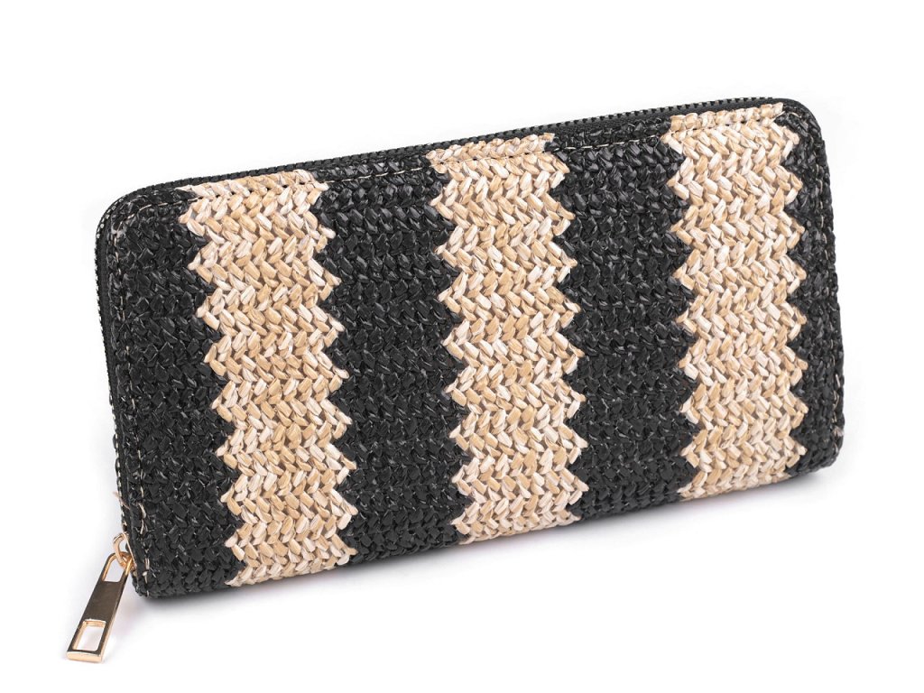 Dámská peněženka vás na první pohled zaujme svým proplétaným potahem, který imituje slámu.