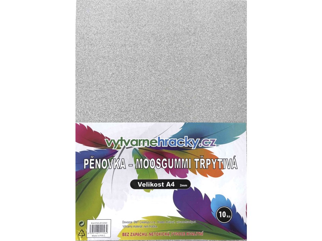 Stříbrná třpytivá pěnovka - 10 ks, A4 - cca 2 mm