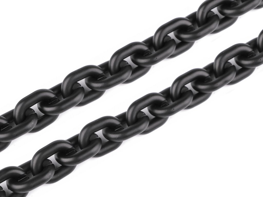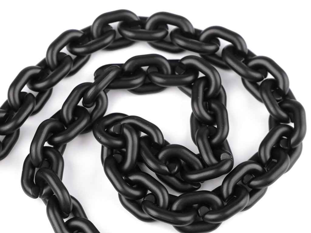 Designový řetěz je vyrobený z matného plastu. Díky tomu má nízkou hmotnost. Využijete ho na zdobení módních doplňků, k ozdobení oděvů, kabelek, bot apod. Řetěz má oválná očka. Je pevný, očka dobře drží, ale dají se i rozevřít. Díky tomu můžete řetěz zkrátit na potřebnou délku.