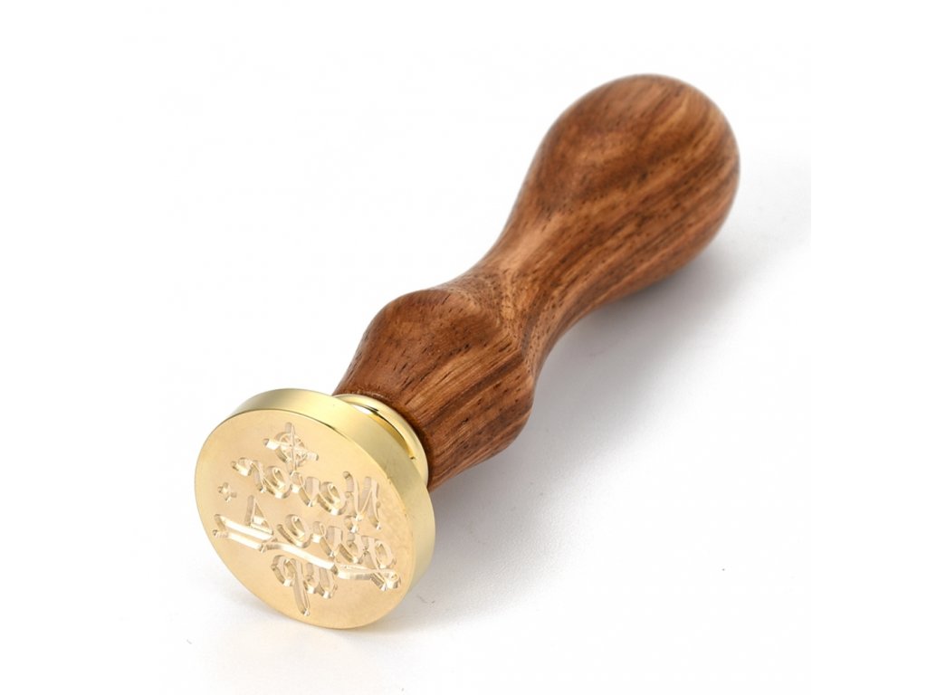 Kovové pečetidlo s dřevěnou ručkou pro práci s pečetními vosky.