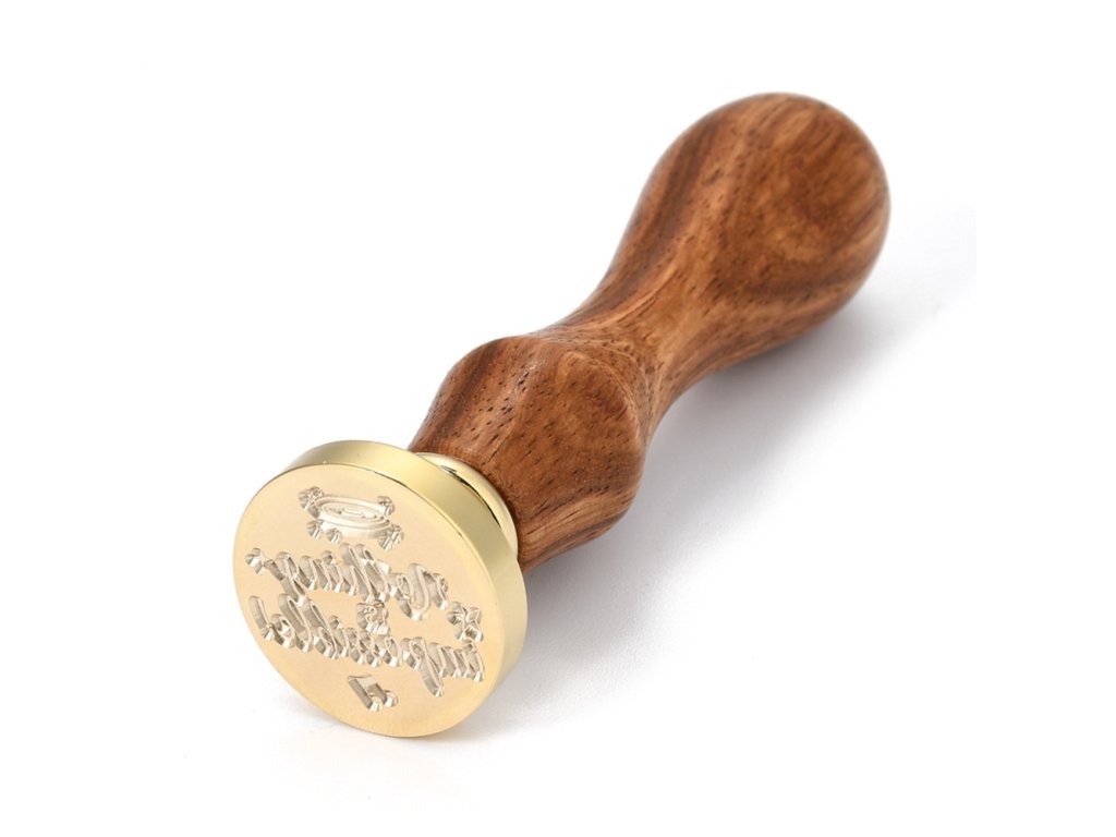 Kovové pečetidlo s dřevěnou ručkou pro práci s pečetními vosky.