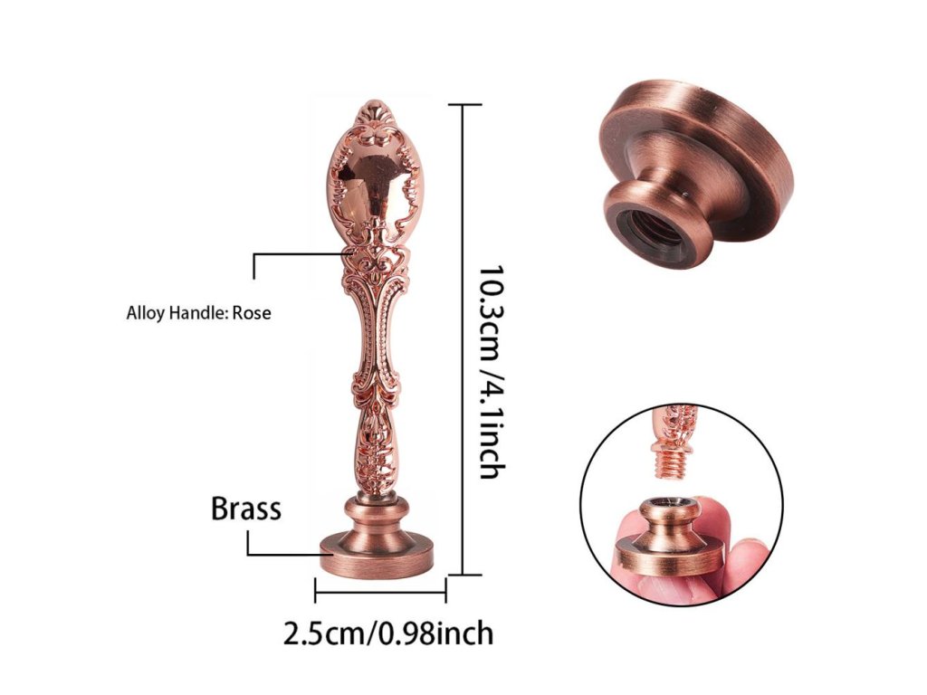 Krásné kovové pečetidlo s ozdobnou kovovou ručkou pro práci s pečetními vosky.