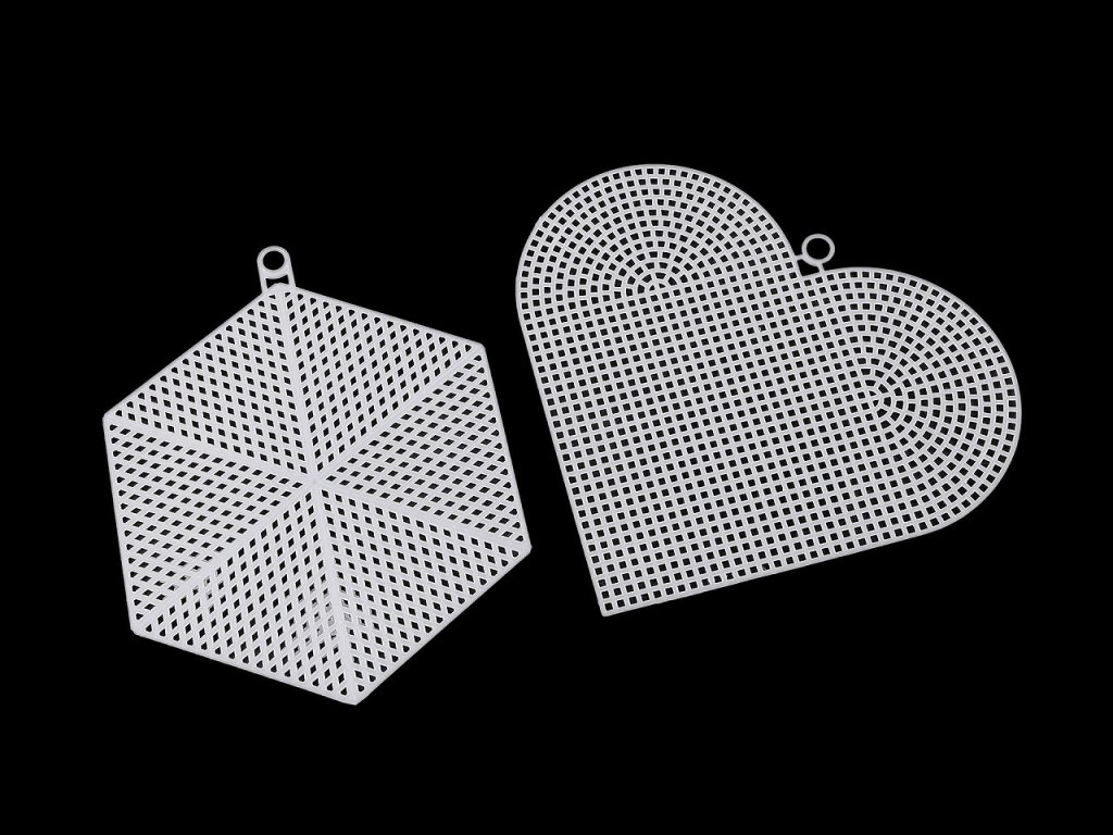 Plastová mřížka je vhodná k výrobě vyšívaných obrázků a dekorací. Nahoře má očko k zavěšení. Používá se silnější příze než u běžného vyšívání - např. příze k pletení nebo háčkování.