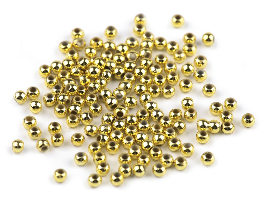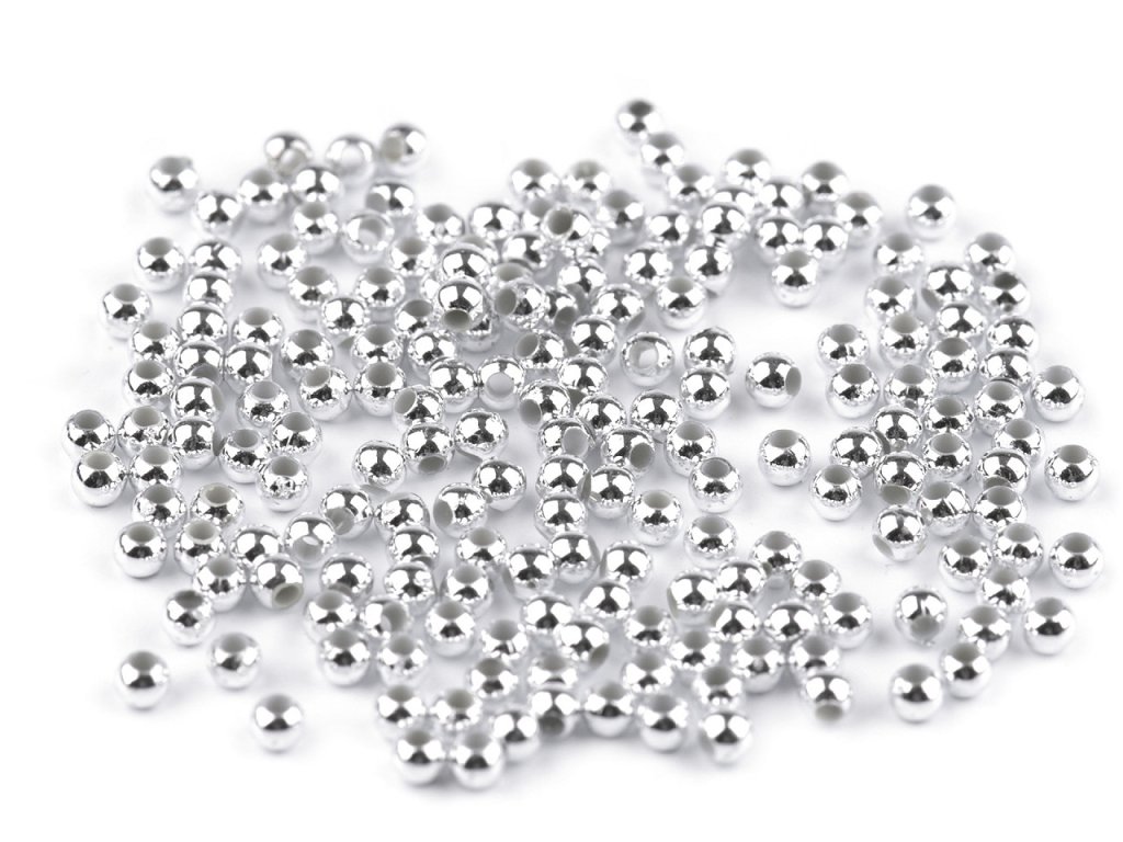 [Výrazné plastové korálky ve tvaru kuličky s metalickou, vysoce lesklou úpravou na povrchu.