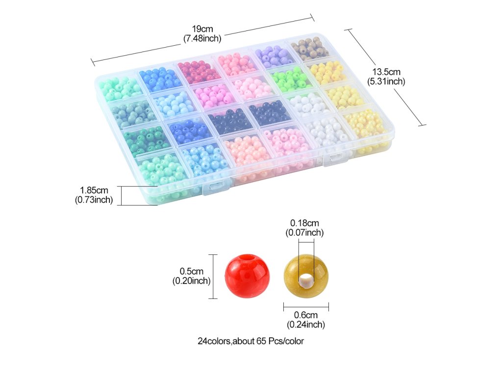 Korálky v pestrých, neprůhledných barvách. 24 různých stylů vám umožňuje vytvořit originální náramky, náhrdelníky nebo přívěsky na klíče.