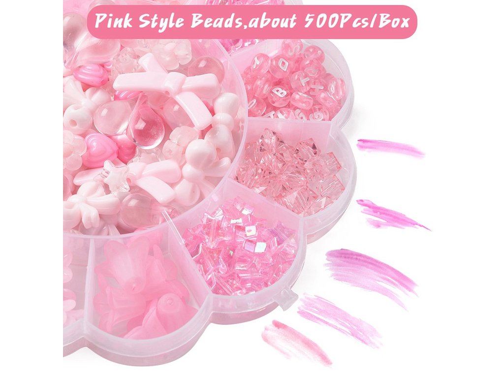 Sada na výrobu náramků s plastovými korálky a nůžkami (500ks) - RŮŽOVÁ