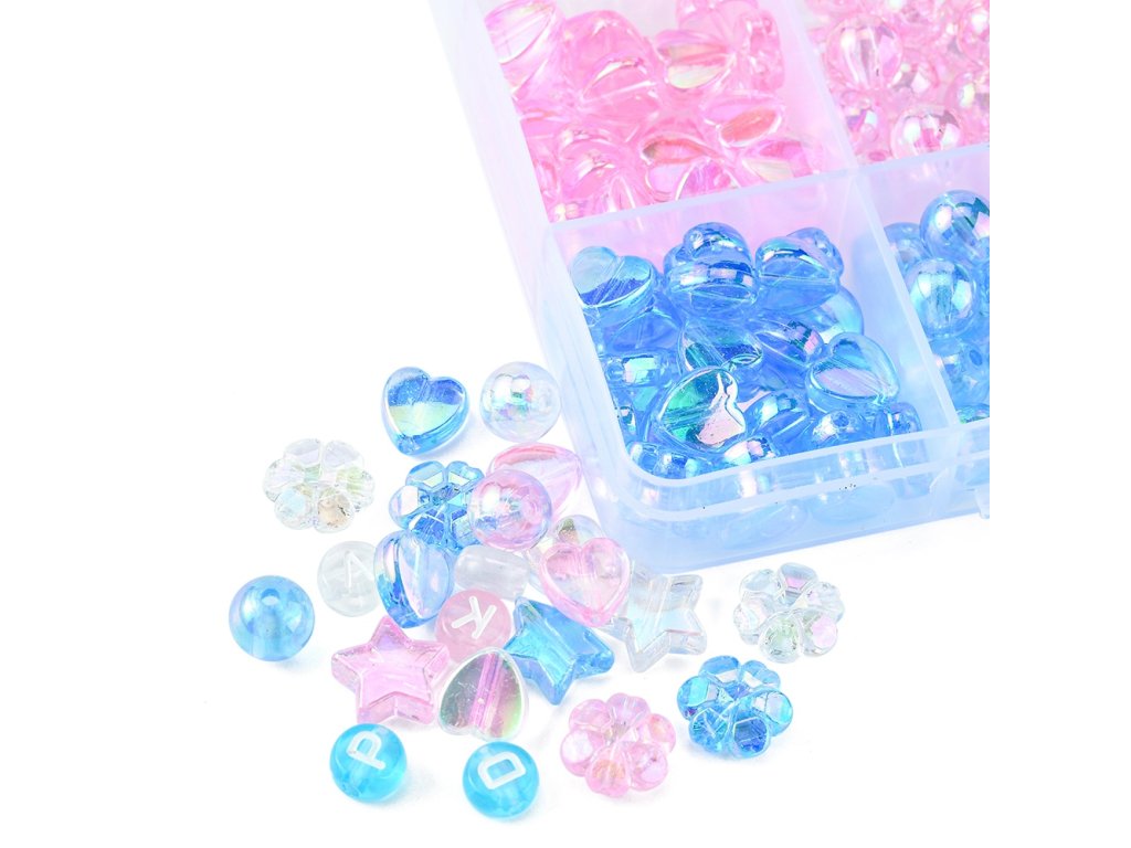 Sada transparentních plastových korálků, mix tvarů (450ks) - RŮŽOVÁ-MODRÁ