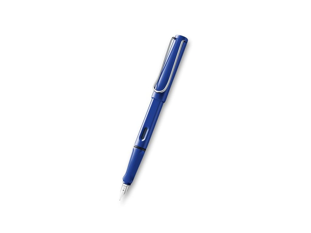 Plnicí pero Lamy Safari v provedení Shiny Blue má tělo z tvrzeného ABS plastu, nasazovací víčko a odpružený kovový klip. Úchopová zóna je ergonomicky upravená, hrot je z nerezové oceli.