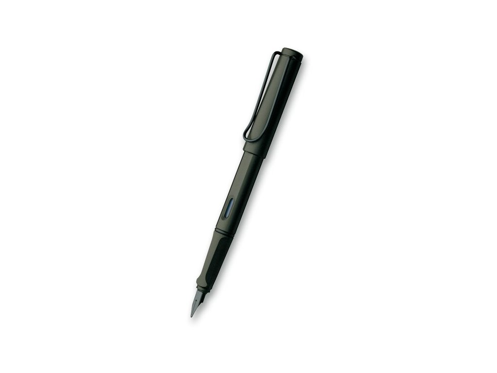 Plnicí pero Lamy Safari v provedení Matt Charcoal má tělo z tvrzeného ABS plastu, nasazovací víčko a odpružený kovový klip. Úchopová zóna je ergonomicky upravená, hrot je z nerezové oceli.