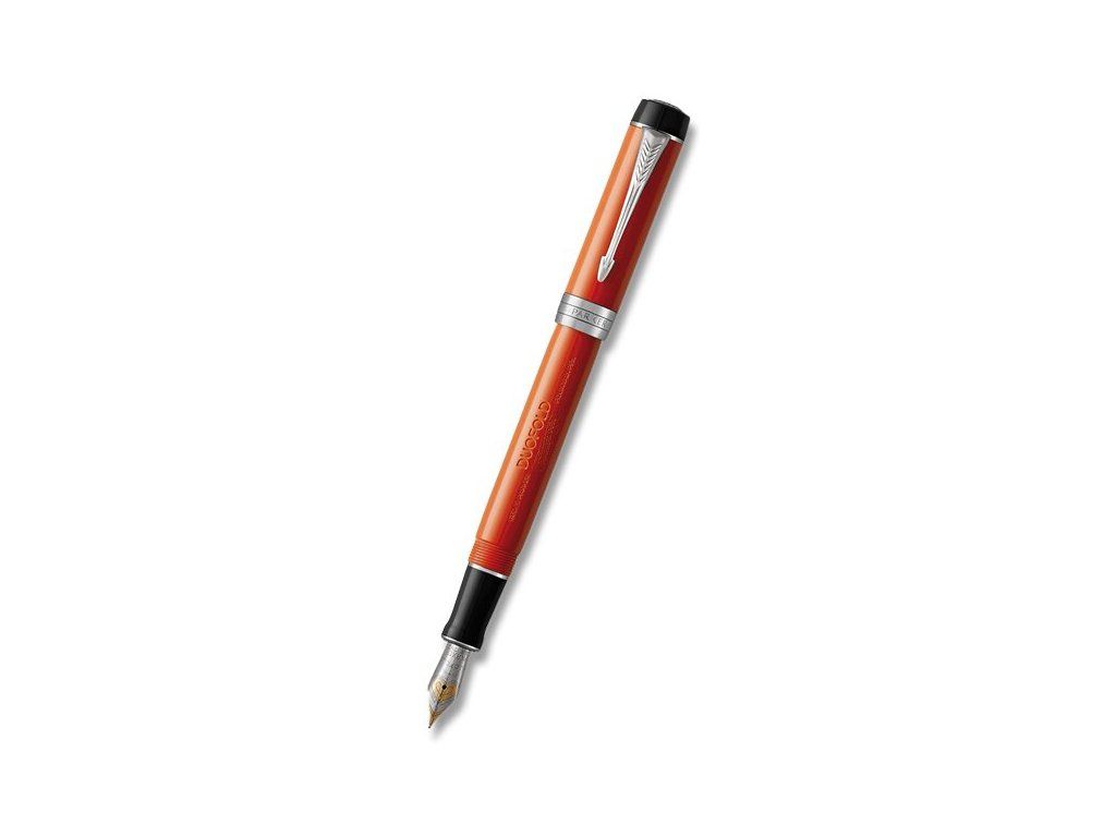 TIP: K plnicímu peru byste mohli využít konvertory Parker s lahvičkovým inkoustem nebo inkoustové bombičky Quink., TIP: Jak vyčistit plnicí pero?, Od chvíle, kdy byl v roce 1921 na trh uveden první model, je Duofold symbolem vytříbenosti a elegance. Nejvyšší nároky na kvalitu provedení a důraz na každý detail pera, vyrobeného z, celkem 21 jednotlivých a pečlivě ručně sestavených kusů, činí z každého Duofolda důstojného následovníka svých slavných předchůdců a žijící ikonu., JAK SE LIŠÍ HROTY F A M?, F - Slabý hrot (Fine) - Vhodný pro běžné psaní a poznámky. Mírný tlak vytváří jemnou linku. Velmi oblíbený, vhodný pro uživatele se standardním rukopisem., M - Střední hrot (Medium) - Průměrný tlak a šíře linky. Vhodný pro uživatele, kteří mají rádi maličko silnější linku.