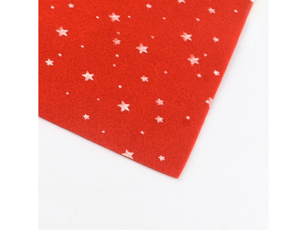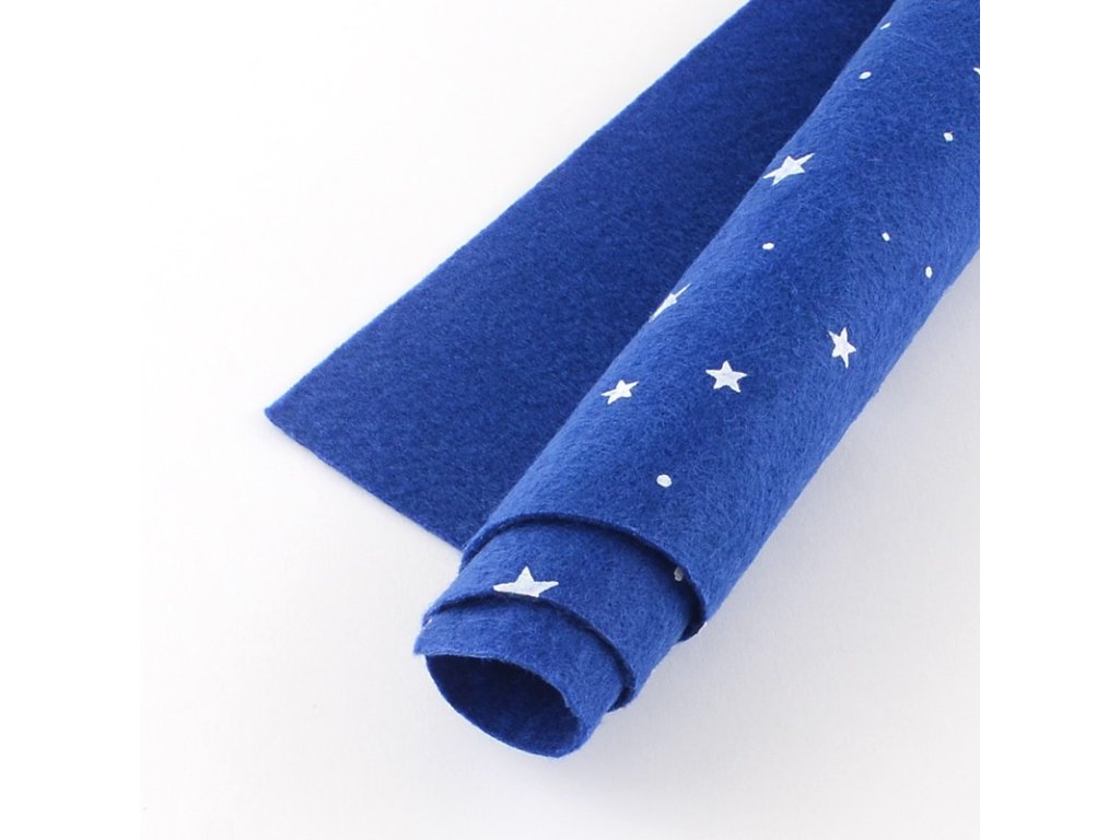 Filc s dekorem hvězd na noční obloze. Filc lze použít ke stříhání, lepení, šití a vyšívání či k výrobě různých přáníček, figurek, zvířátek nebo broží.