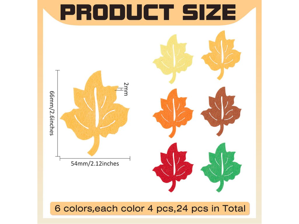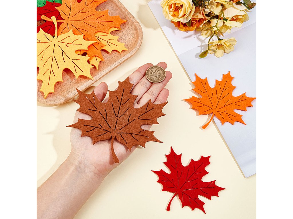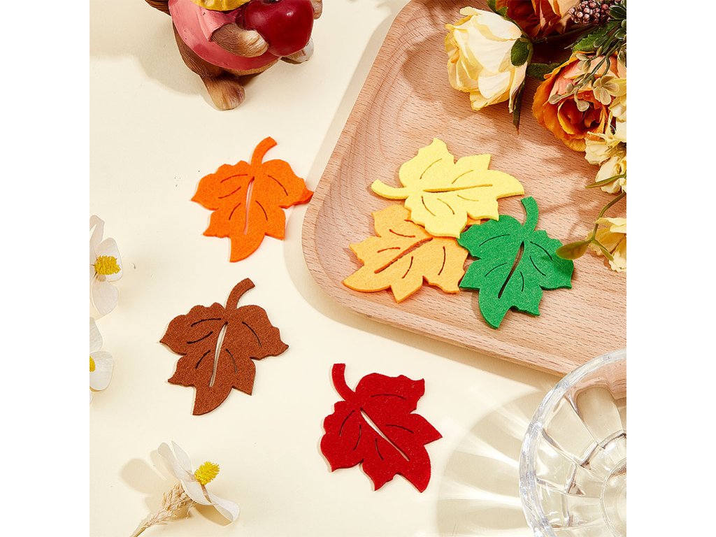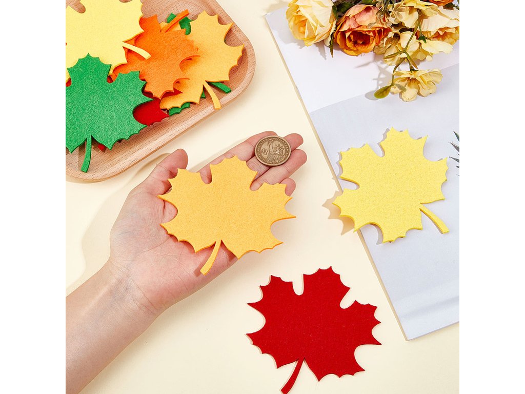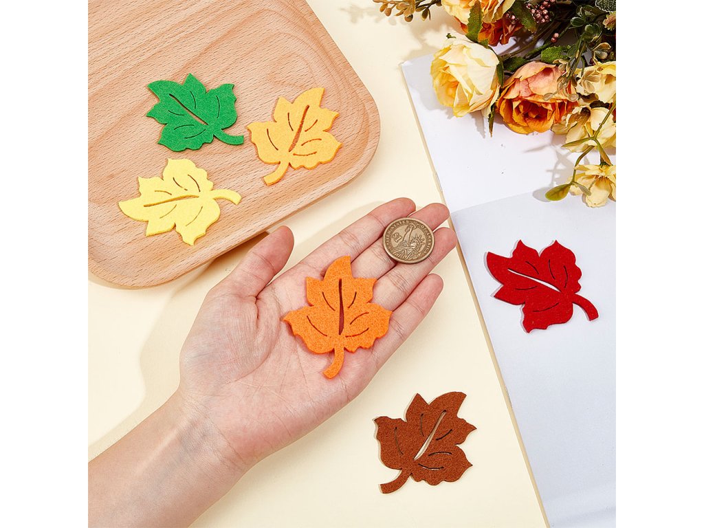 Filcové listy jsou perfektní volbou pro ozdobení podzimních věnců, girland, větviček ve váze nebo jiných aranžmá. Skvěle se hodí pro filcování jehlou, scrapbooking nebo na zdobení rámečků, přáníček, jmenovek a pozvánek.