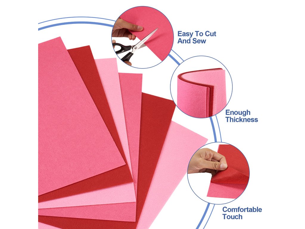 Tato sada kvalitního filcu v barevně sladěných variantách je nepostradatelným materiálem pro všechny kreativní projekty. Plsť je velmi příjemná na dotek, má optimální tloušťku pro snadné stříhání i šití a díky své pevnosti skvěle drží tvar. Je ideální pro výrobu textilních dekorací, jako jsou květiny, zvířátka, dětské brože nebo ozdoby do vlasů, a skvěle se hodí i pro tvoření s dětmi ve školách či kroužcích.