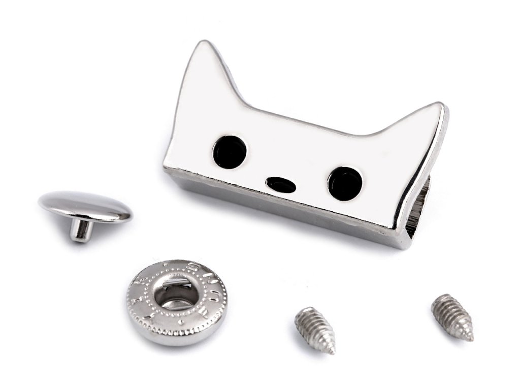 Zapínání ve tvaru kočky využijete na tašky, peněženky či kabelky s klopou. Díl s kočkou připevníte do klopy pomocí přiložených šroubků. Wuk (Ø10 mm) se připevní lisem a pistonem.
