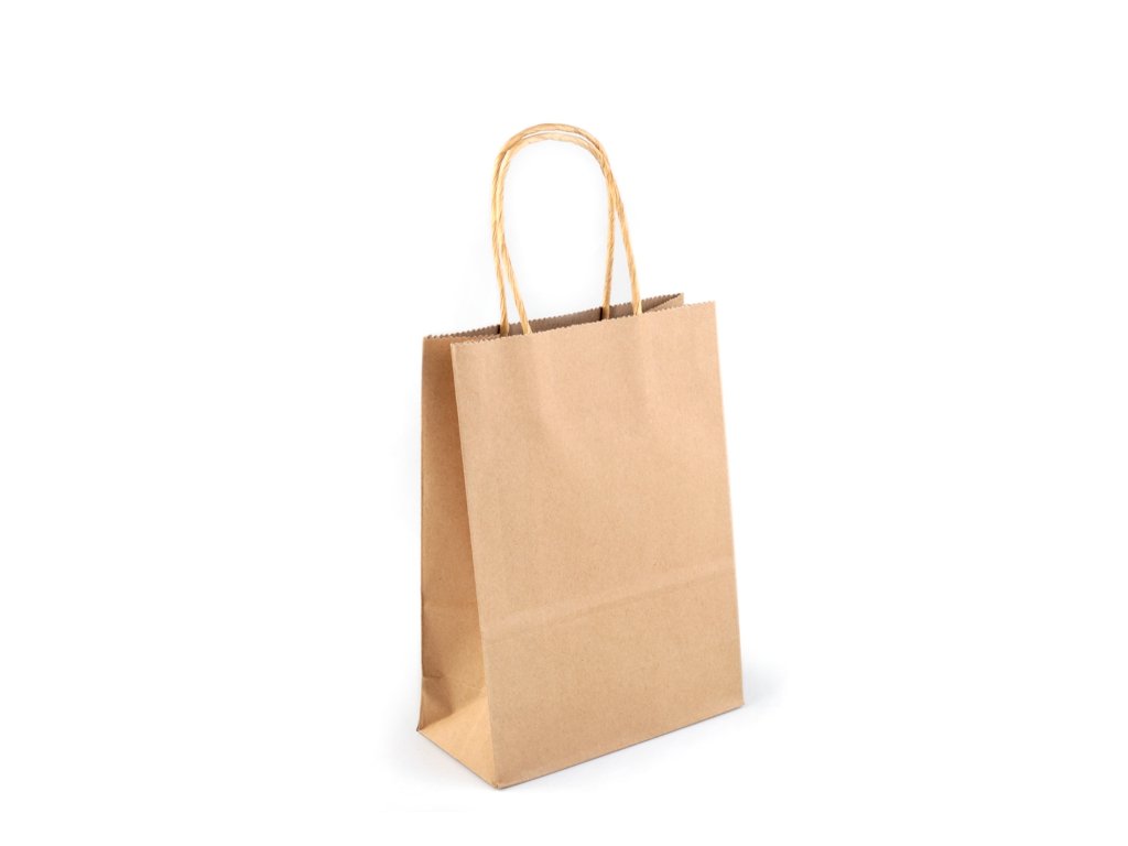 Papírová taška v přírodním stylu je vhodná k dozdobení. Můžete ji pomalovat či polepit různými obrázky nebo krajkou. Taška je vhodná k jakékoliv příležitosti, ušetří vám čas při balení dárků.