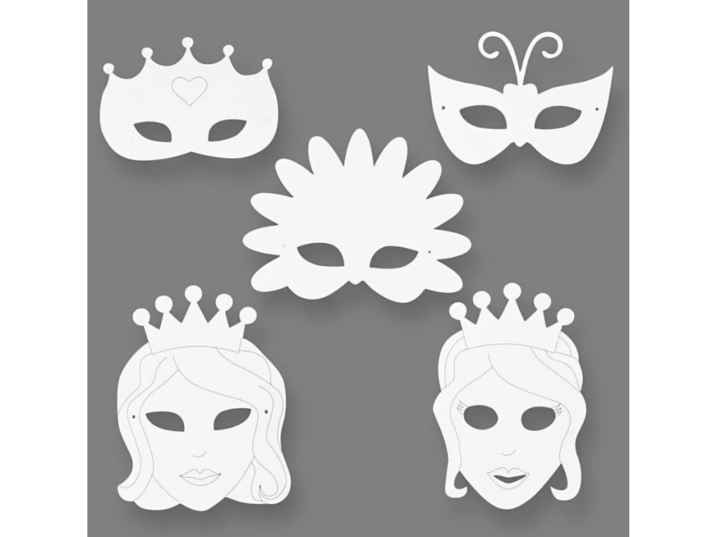 Papírové karnevalové masky vhodné k dozdobení.