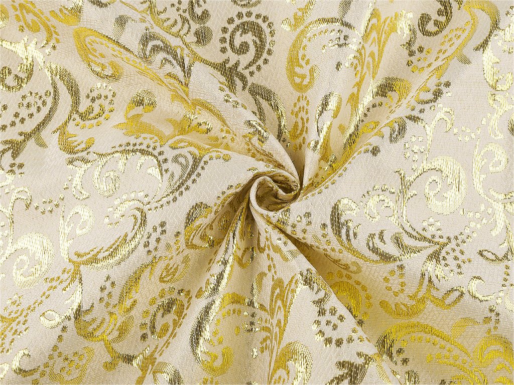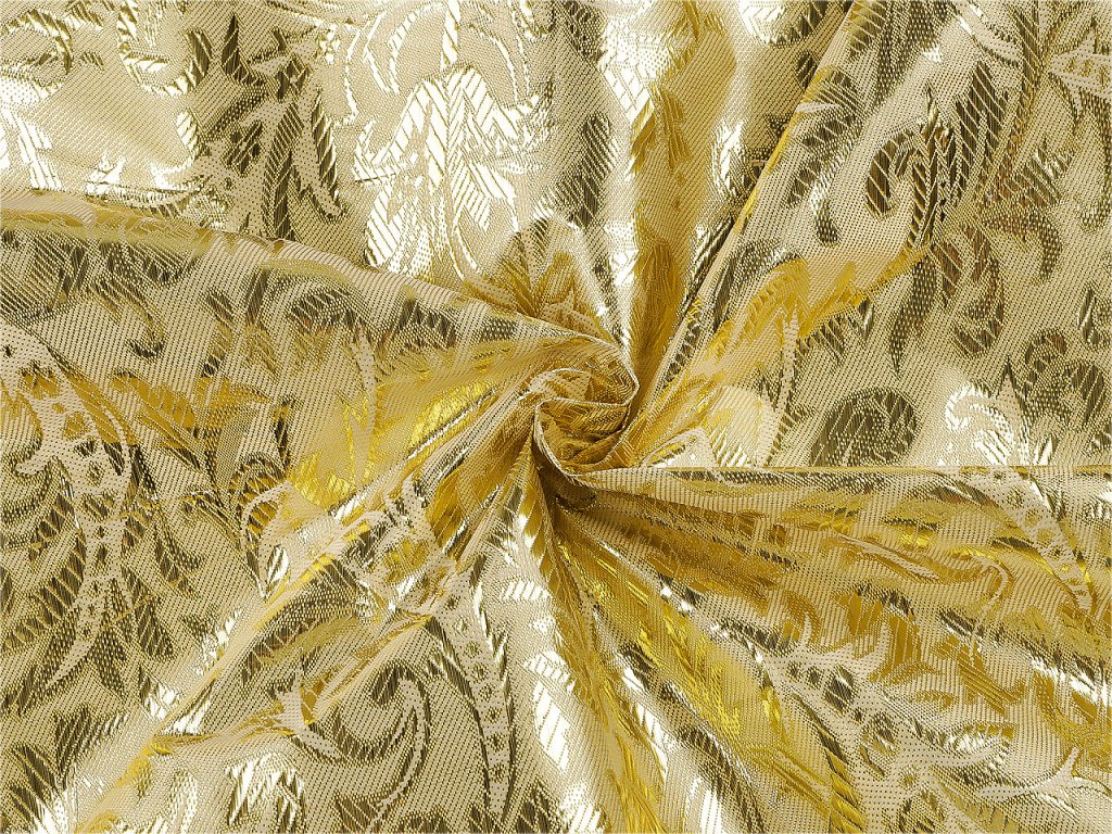 Dekorační látka působí díky lesklým lurexovým vláknům luxusně a elegantně. Vynikne jako ubrus na slavnostní tabuli, ale můžete ji použít i na poutavé detaily divadelních kostýmů, povlaky na polštáře či na závěsy.