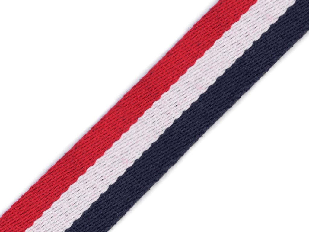 Oboustranný pruhovaný popruh využijete převážně jako ucho na batohy či tašky. Můžete ho použít také na výplety nábytku, lehátek, saní, lemování textilních výrobků nebo na výrobu opasků.