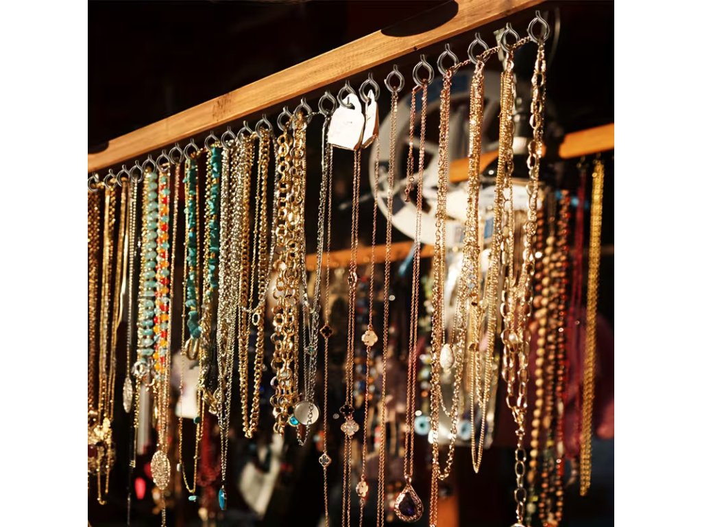 Kovový šroub s okem v platinové barvě pro zavěšení a kotvení v DIY a dekoračních projektech.