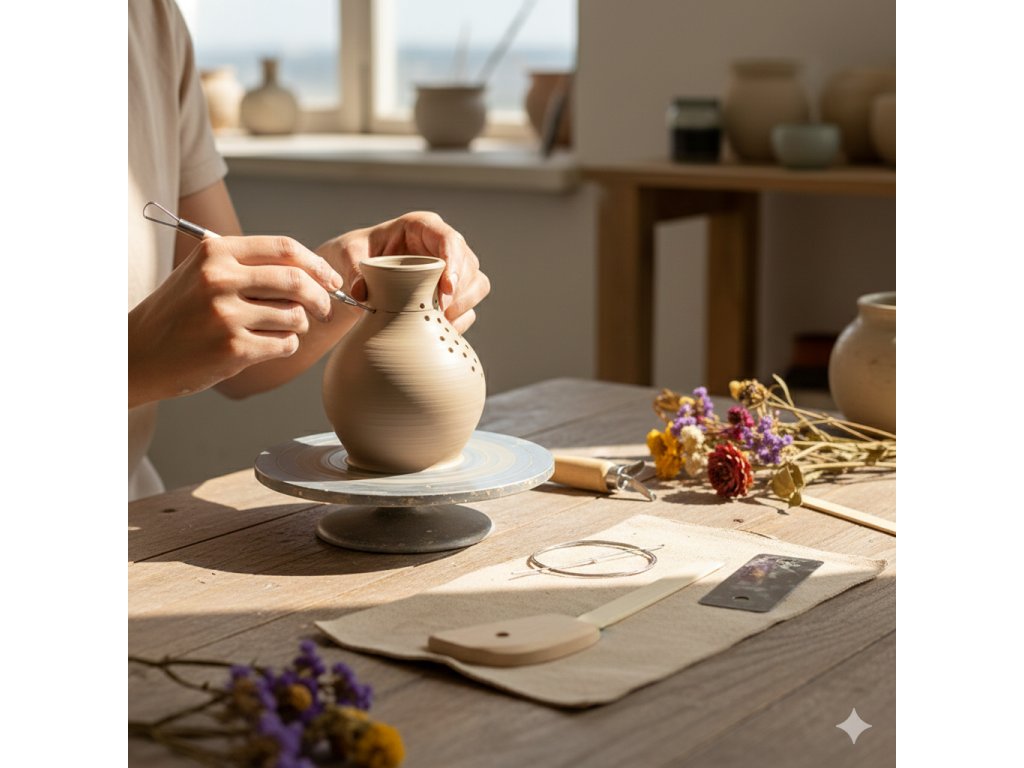 Tato univerzální sada obsahuje nepostradatelné pomocníky pro každého, kdo se věnuje modelování z keramické hlíny nebo jiných tvárných hmot. Najdete v ní nástroje pro vyřezávání, vyhlazování, tvarování i řezání hlíny, které se skvěle hodí pro detailní práci na hrnčířském kruhu i pro ruční modelování originálních dekorací a nádob.