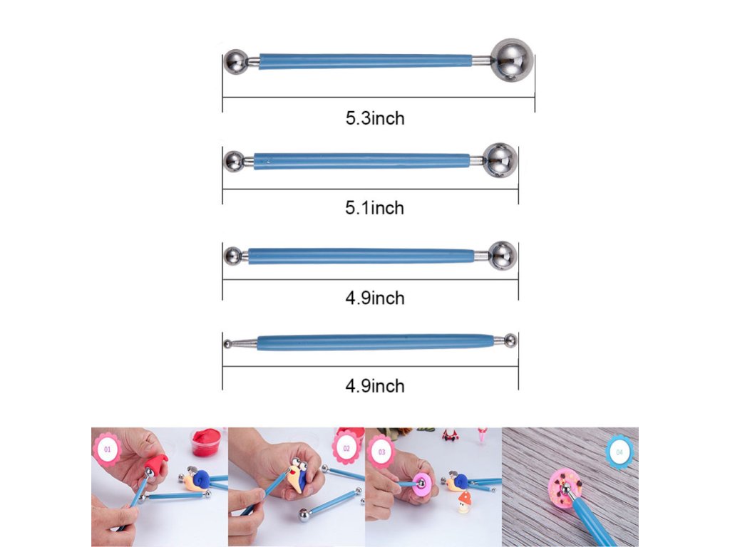 Tato sada Vám usnadní a vylepší práci s modelovacími hmotami. Pomocí nich můžete modelovat a tvarovat květy, figurky, zvířátka… Sami si přizpůsobíte, jaká koncovka se Vám bude k čemu nejlépe hodit - pro tvarování těla, hlavy, paží, detailů, výrazů, vlasů a ozdob.