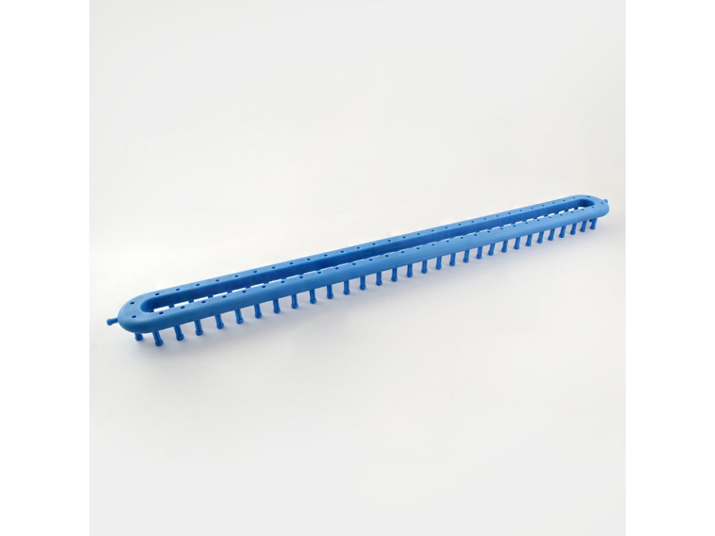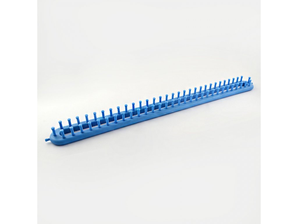 Obdélníkovou pomůcku pro pletení je dlouhá 57cm, široká 5cm a vysoká 3cm.